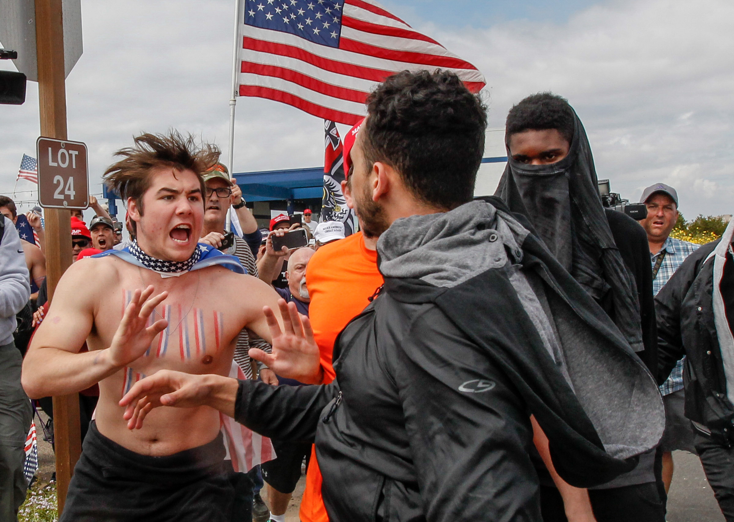 HUNTINGTON BEACH, Calif. — Violence erupted at a Make America Great Again rally in Huntington Beach on Saturday when an anti-Trump protester allegedly doused the female organizer of the event with pepper spray and was immediately set upon by a group of Trump supporters.